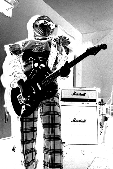 punk rock vocals, blackened guitar decomposition and power electronics.