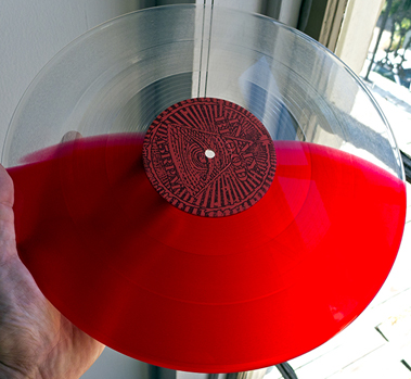 sleeve with band photo and lyrics, and blood colored translucent vinyl. |